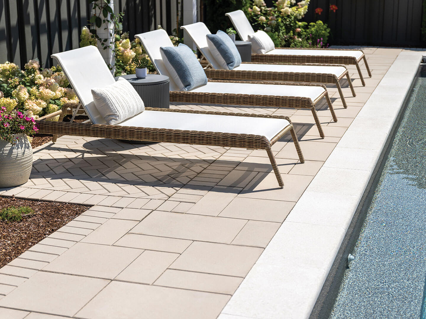 Give your space a modern feel. Go for the wow factor with edgy, complex, and unexpected paver patterns. Embrace the dynamic contrast of deep charcoal and soft beige hues or take a minimalist approach with a monochrome palette.
