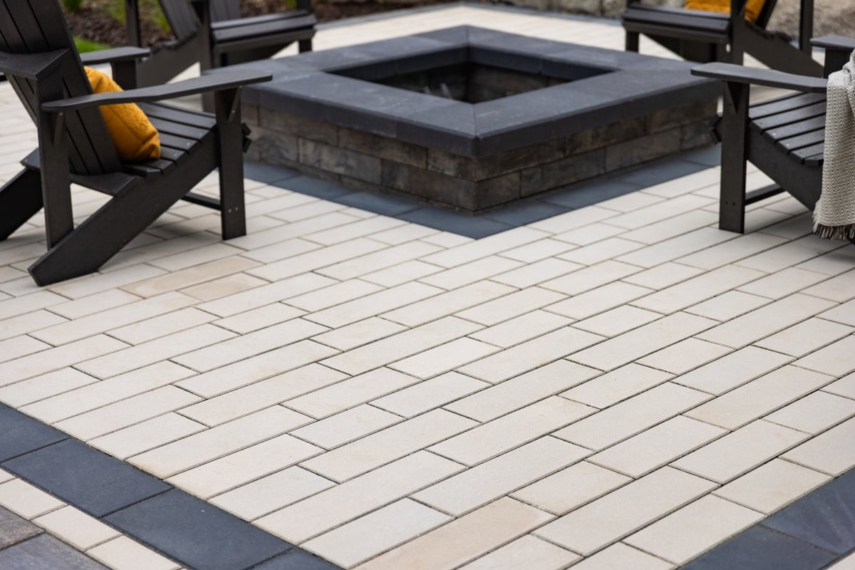 INFLUENCE PAVERS® feature crisp edges and a clean linear feel. Their five smooth, plank-style shapes minimize joint lines and lend themselves to invent interesting patterns using different color combinations.