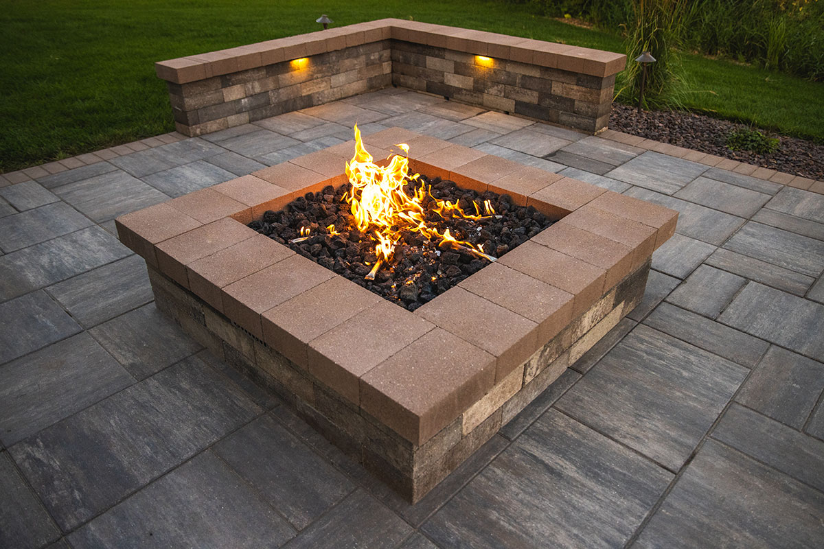 Smooth and Tumbled SUMMIT STONE® Square Fire Pit Kits have an exterior dimension of 51" x 51" x 11" and include a square steel fire ring. Top off with a specially designed fire ring cap, and enjoy the beauty and relaxation of a warm outdoor fire.