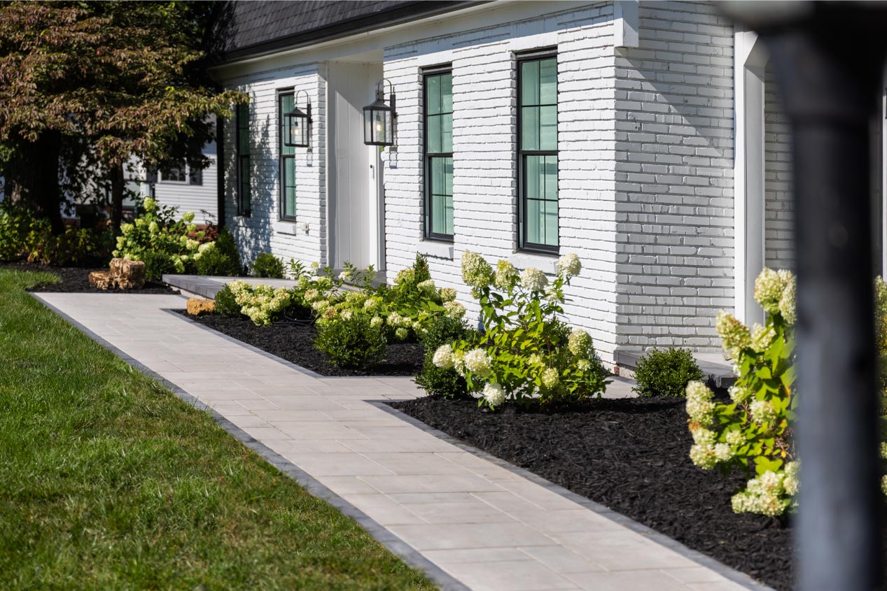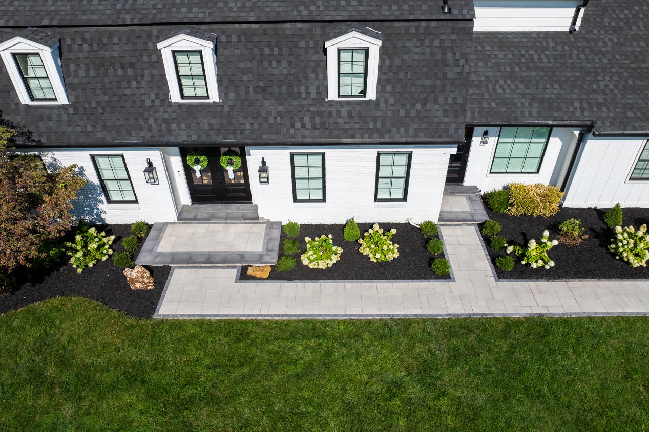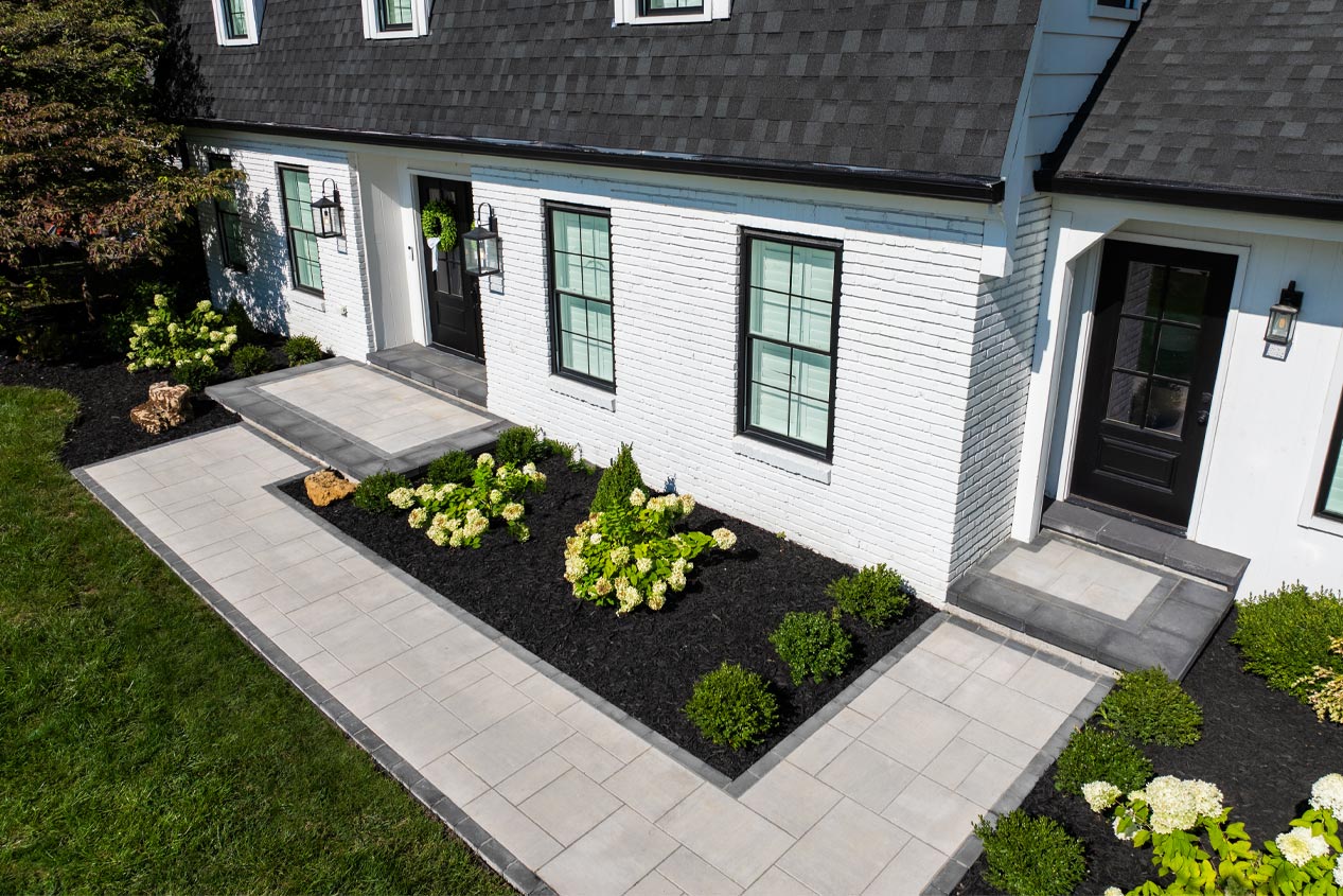 Concrete pavers are manufactured to withstand years of wear and tear from pedestrian traffic and the elements. County Materials’ dimensionally compatible pavers are manufactured in uniform heights with a contractor-friendly design that simplifies installation and allows maximum design freedom. These homeowners can look forward to enjoying their stunning new front entranceway for years to come.